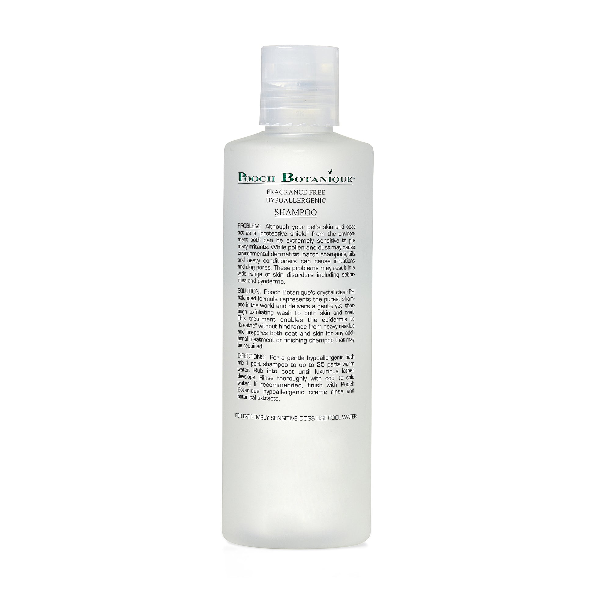 Our non-irritating, pH-balanced formula is completely free of fragrances, dyes, and harsh chemicals, making it the perfect choice for sensitive or allergy-prone pups. The unscented, crystal-clear shampoo gently exfoliates to remove dead skin cells and heavy residue, allowing the skin to breathe without hindrance. Use it as a purifying first step before applying conditioning crèmes or soothing medicated treatments.