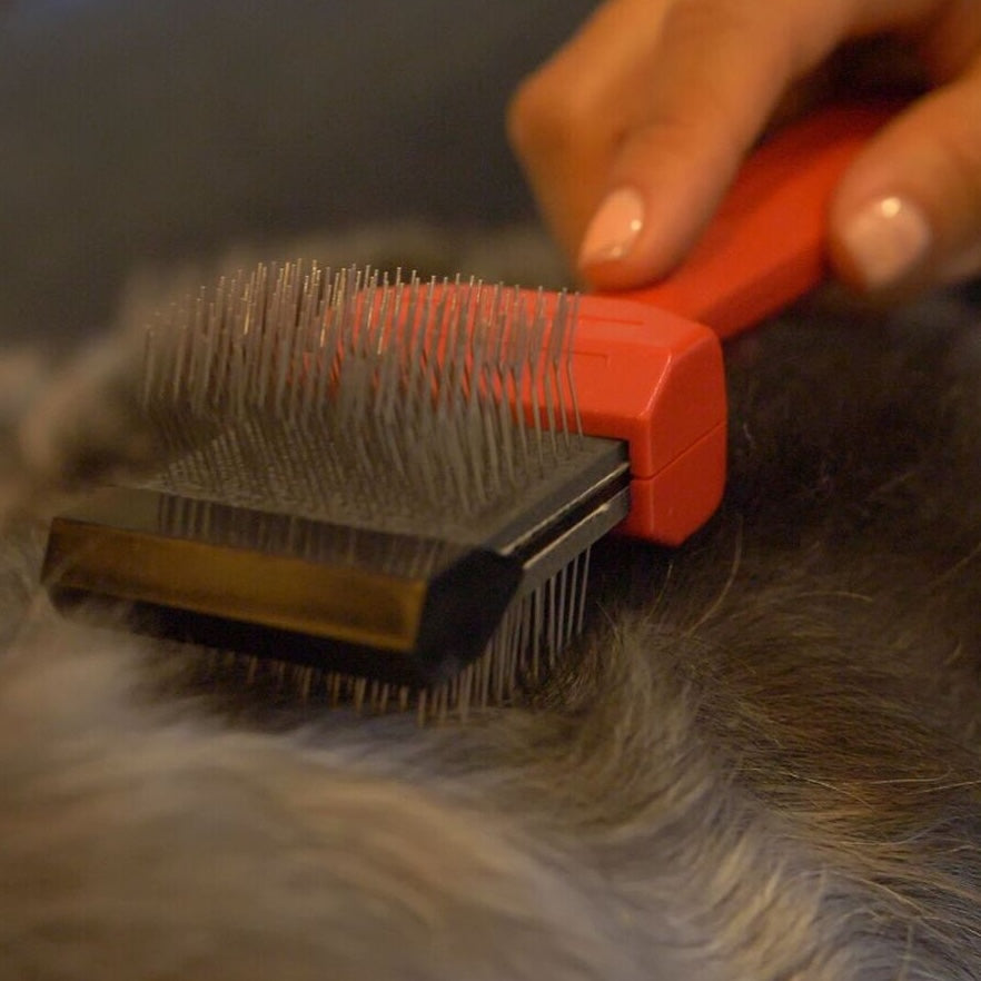 - Long, ultra-polished stainless steel bristles are gentle on dog's skin.