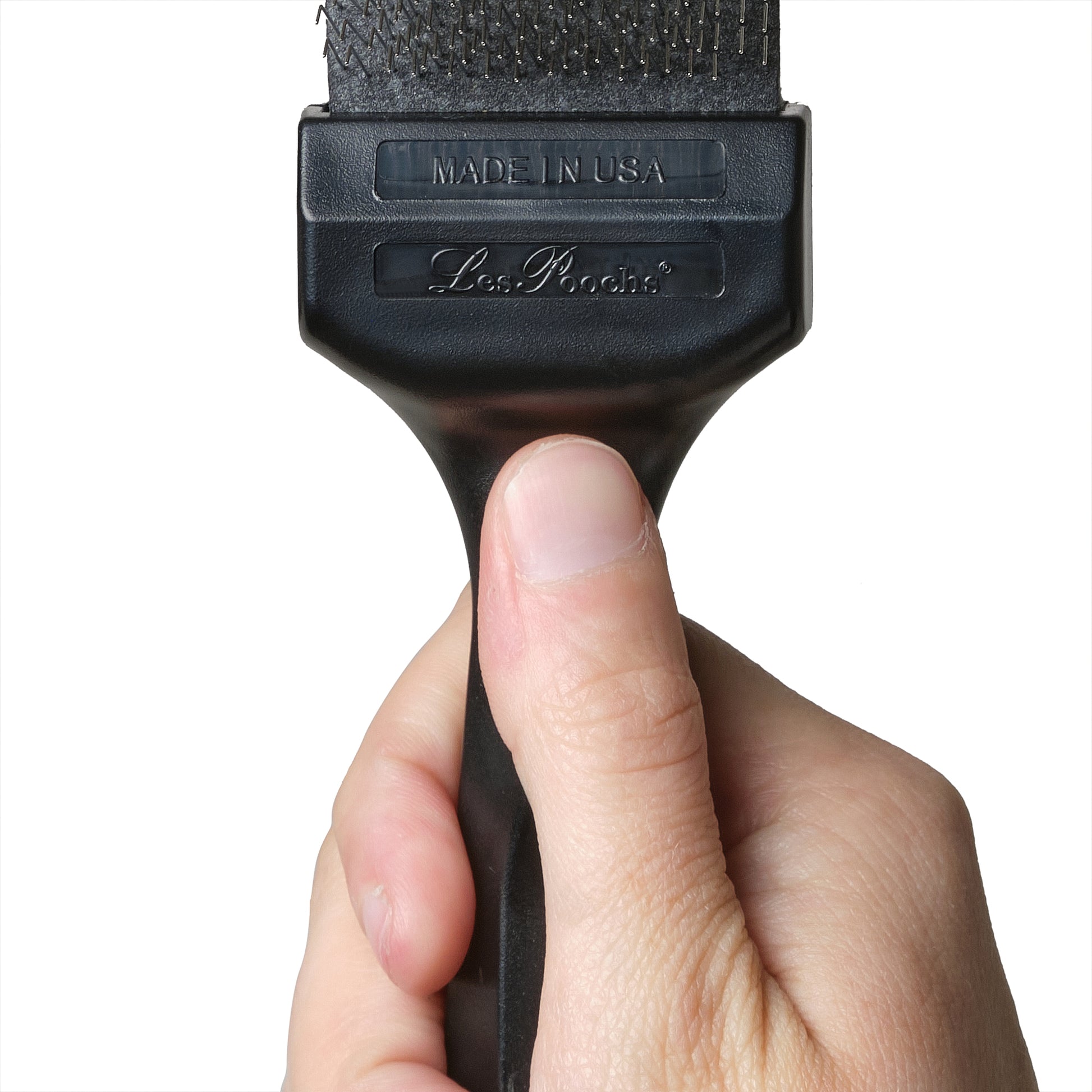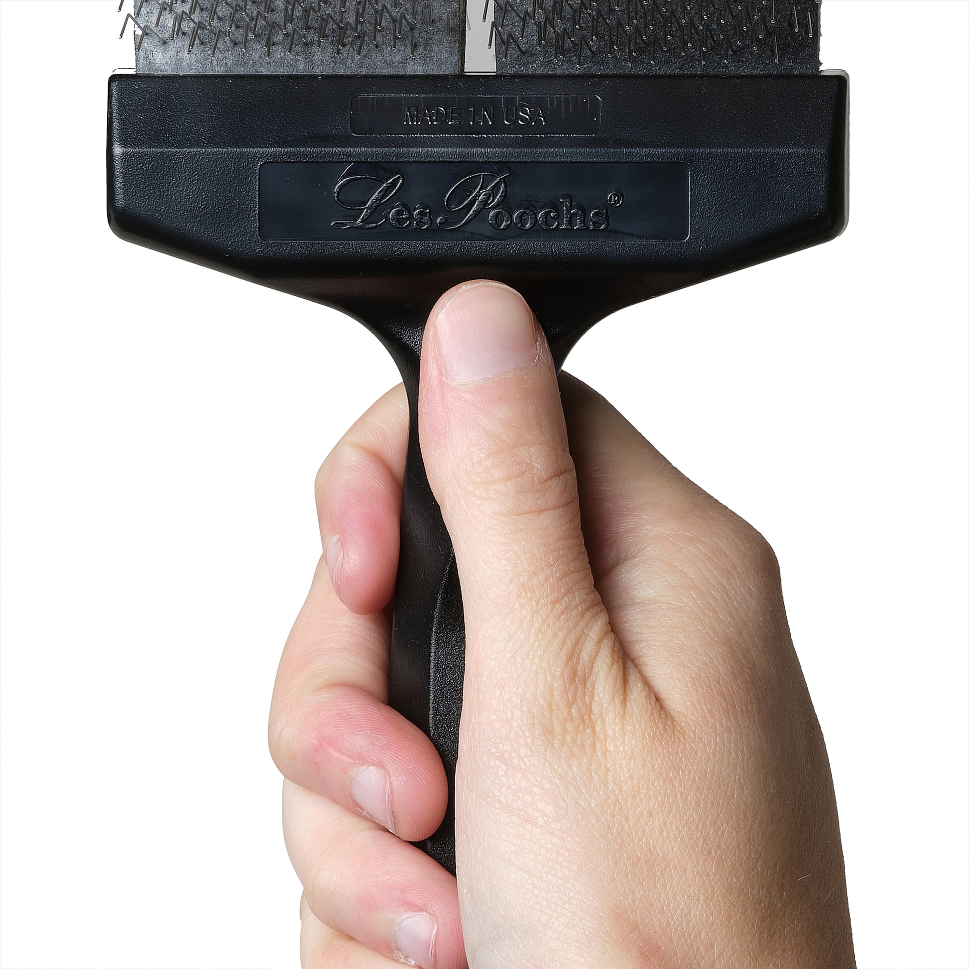 Make grooming thick, coarse, or double-coated fur less daunting with the Les Poochs Pro Brush – Firm Flexible Head.