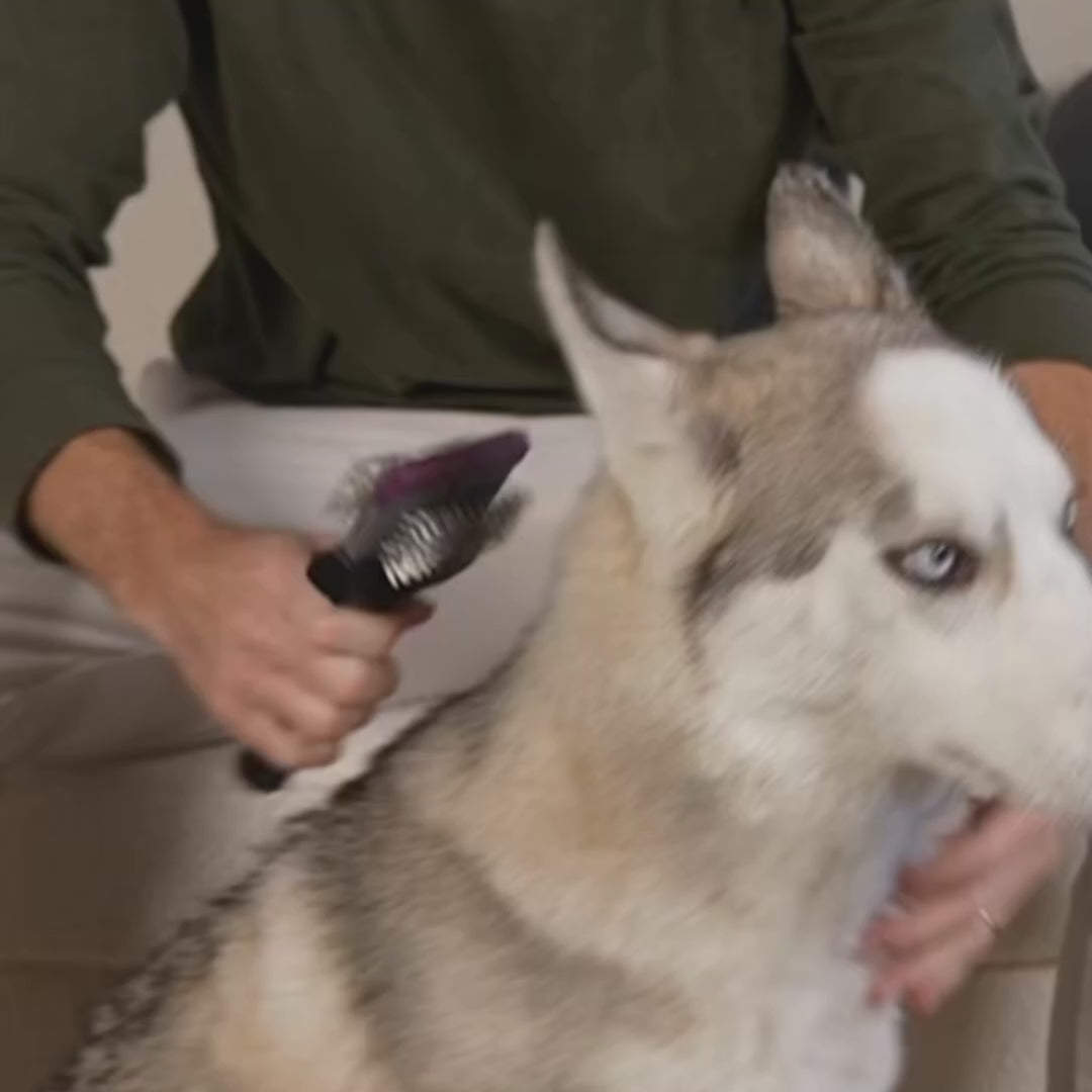 - Signature flexible brush head allows the brush to contour the dog’s body.
