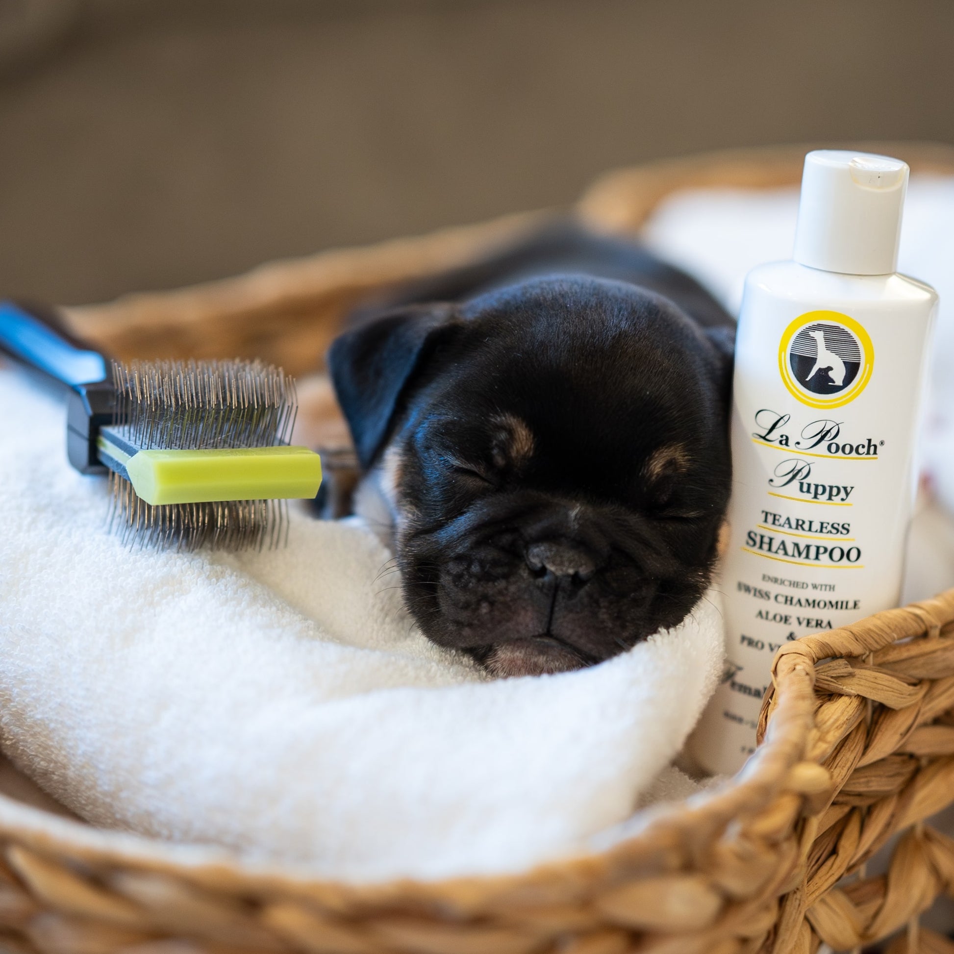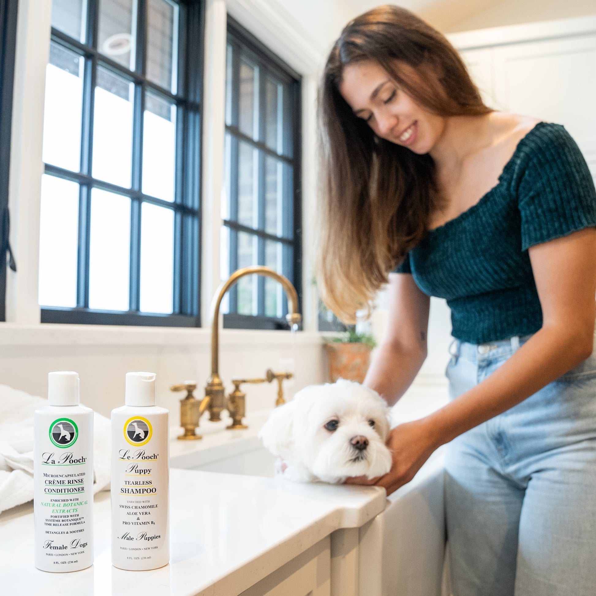 Give your pup a gentle, luxurious cleanse with Les Poochs Tearless Texturizing Shampoo.